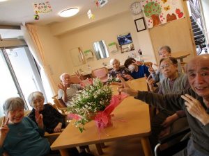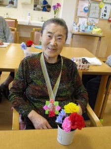5月に入り、暑く感じる日が増えました。4階「愛宕山」の皆様は毎日お元気に過ごされています。今月も楽しい事、嬉しい事の数だけ笑顔がありました。まず5月と言えば「母の日」ですよね。職員からは手作りの「母の日カード」を、あるご家族様からは「カーネーション」が贈られてきました。