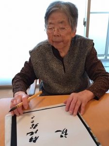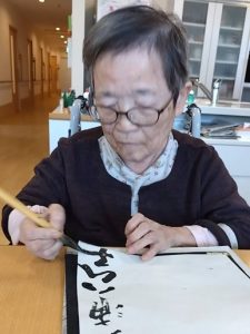 皆様の笑顔とともに、新しい年がスタートいたしました。年明け最初の行事として書き初めを行い、少しお手伝いをさせていただきながら、「笑」「馬」「笑福」など、個性あふれる素敵な作品が並びました。