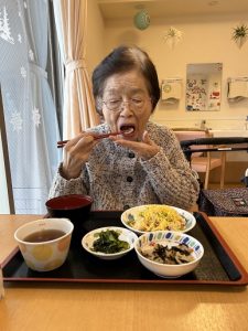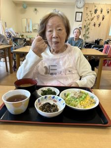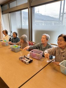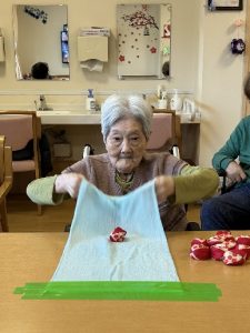 お昼には彩り豊かなちらし寿司を召し上がっていただき、皆様「おいしいね」と笑顔が見られました。また、おやつの時間には饅頭を楽しまれ、和やかなひとときを過ごされました。
