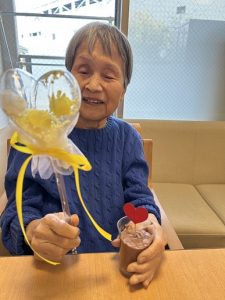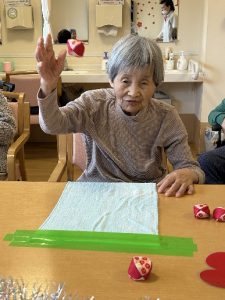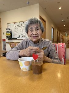 バレンタインにはゲームを楽しんだ後、職員手作りのチョコムースを召し上がっていただき、「とてもおいしいね、」「これ、売れるんじゃない?」といった嬉しいお声も聞かれ、甘く心温まるひとときとなりました。