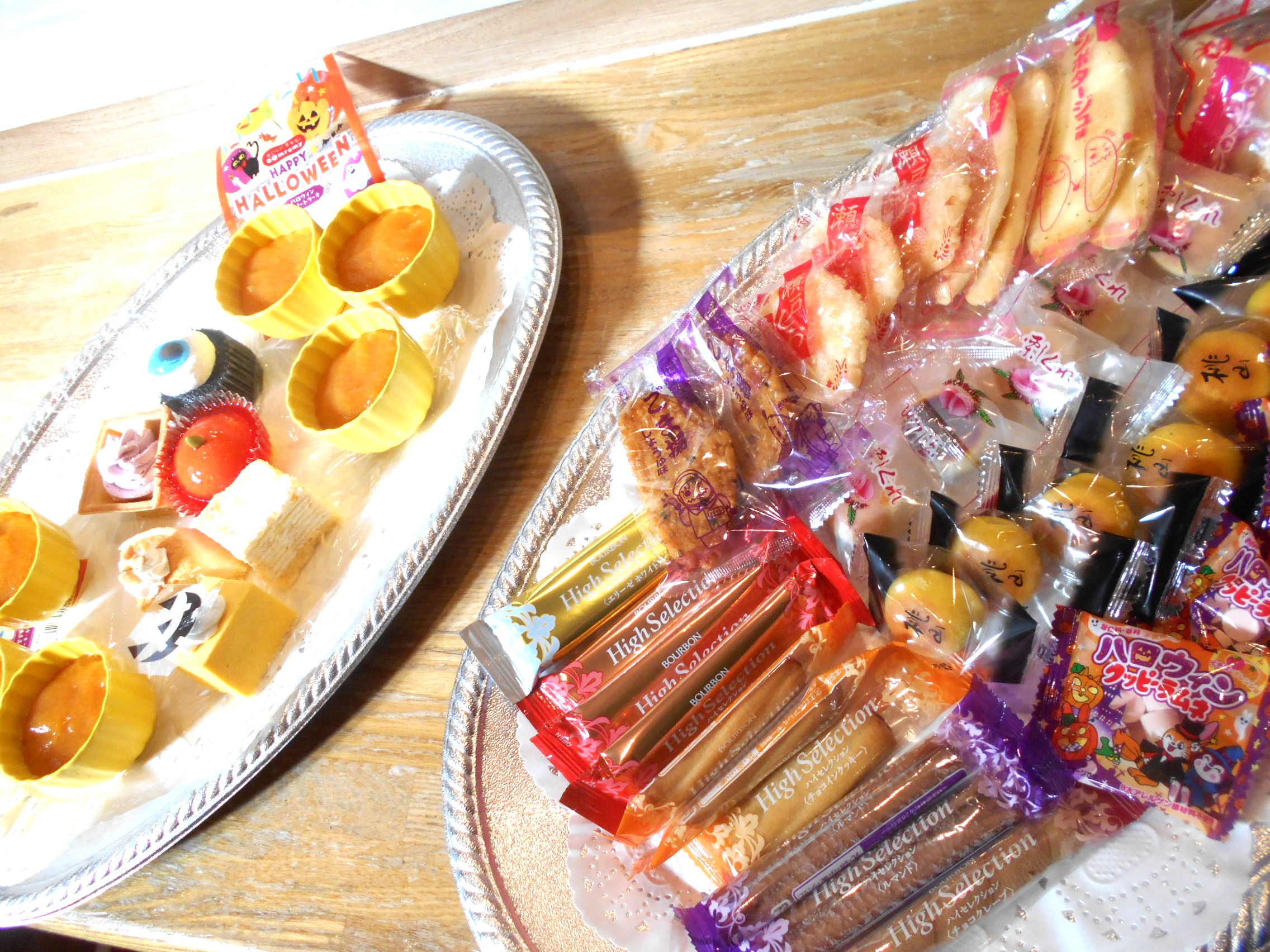 テーブルには、プチケーキや柿のピューレ、懐かしい袋菓子など、季節を感じるお菓子がずらりと並びました。