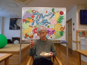 目の前にフルーツを運ぶと「ほぉ」とと驚きの表情を見せてくださいました。