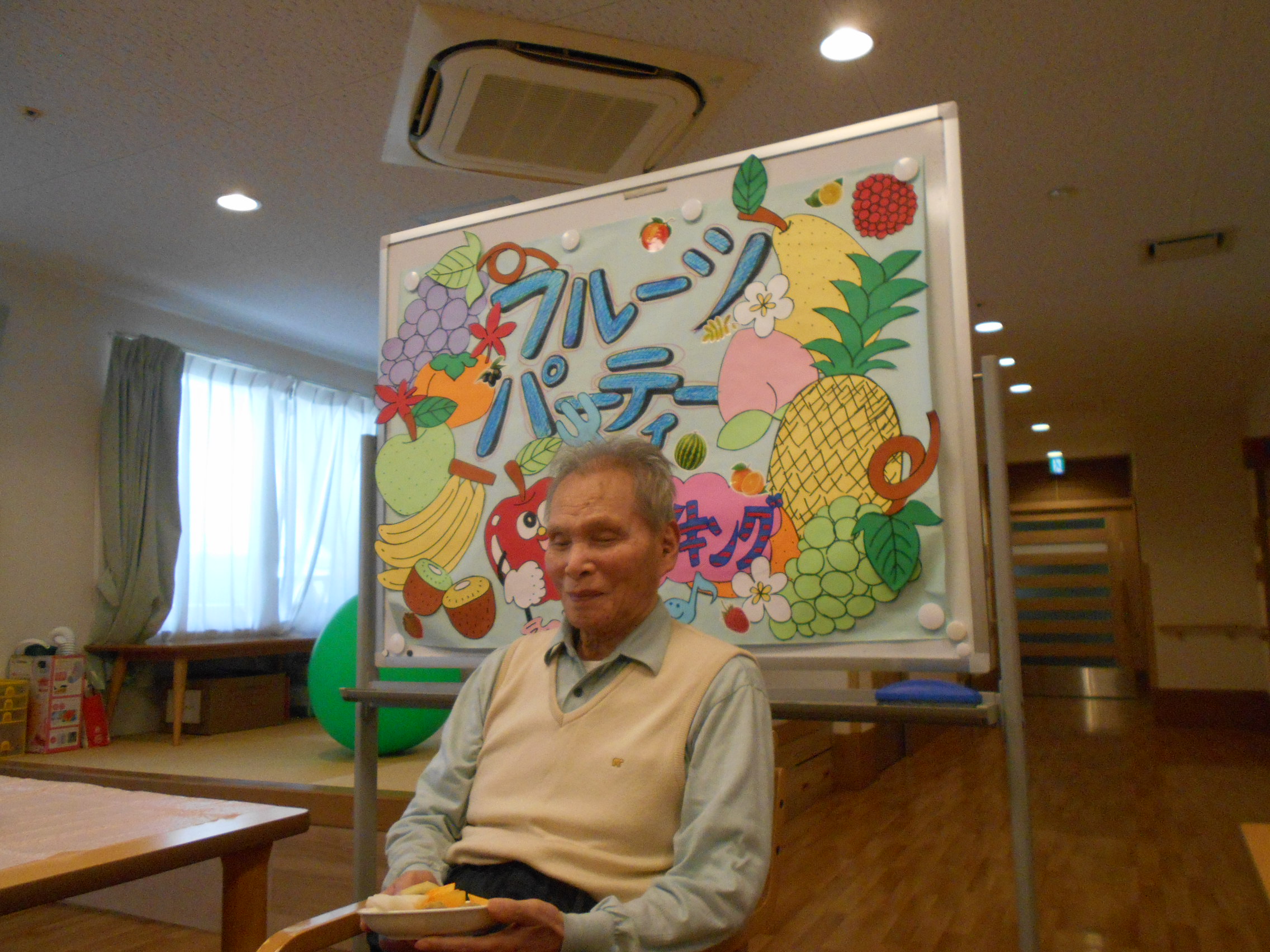 目の前にフルーツを運ぶと「ほぉ」とと驚きの表情を見せてくださいました。