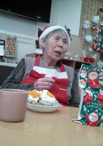 最後は、おやつの時間として、各フロアごとにクリスマスケーキをご用意しました。