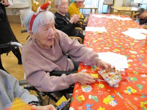 「私も着よか。」とおっしゃり、クリスマスの衣装を身にまとわれるご入居者様もおられ、