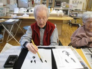 書き初めで「いも」と書かれた方をはじめ、皆さま笑顔で召し上がられ、「おいしいね」「待ってました」と喜ばれるご様子が見られました。