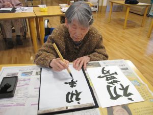 書き初めで「いも」と書かれた方をはじめ、皆さま笑顔で召し上がられ、「おいしいね」「待ってました」と喜ばれるご様子が見られました。