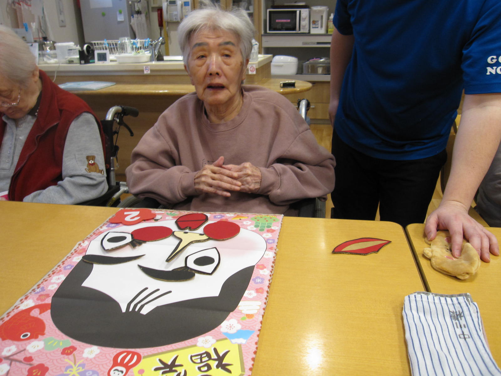 食べ物を選ばれ、「食べたいなぁ……」と笑いながら書かれる姿に、職員も思わず心の中で「お芋はこの後、お節で出てきますからね」と、思わず微笑んでしまう瞬間でした。
