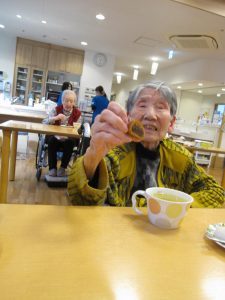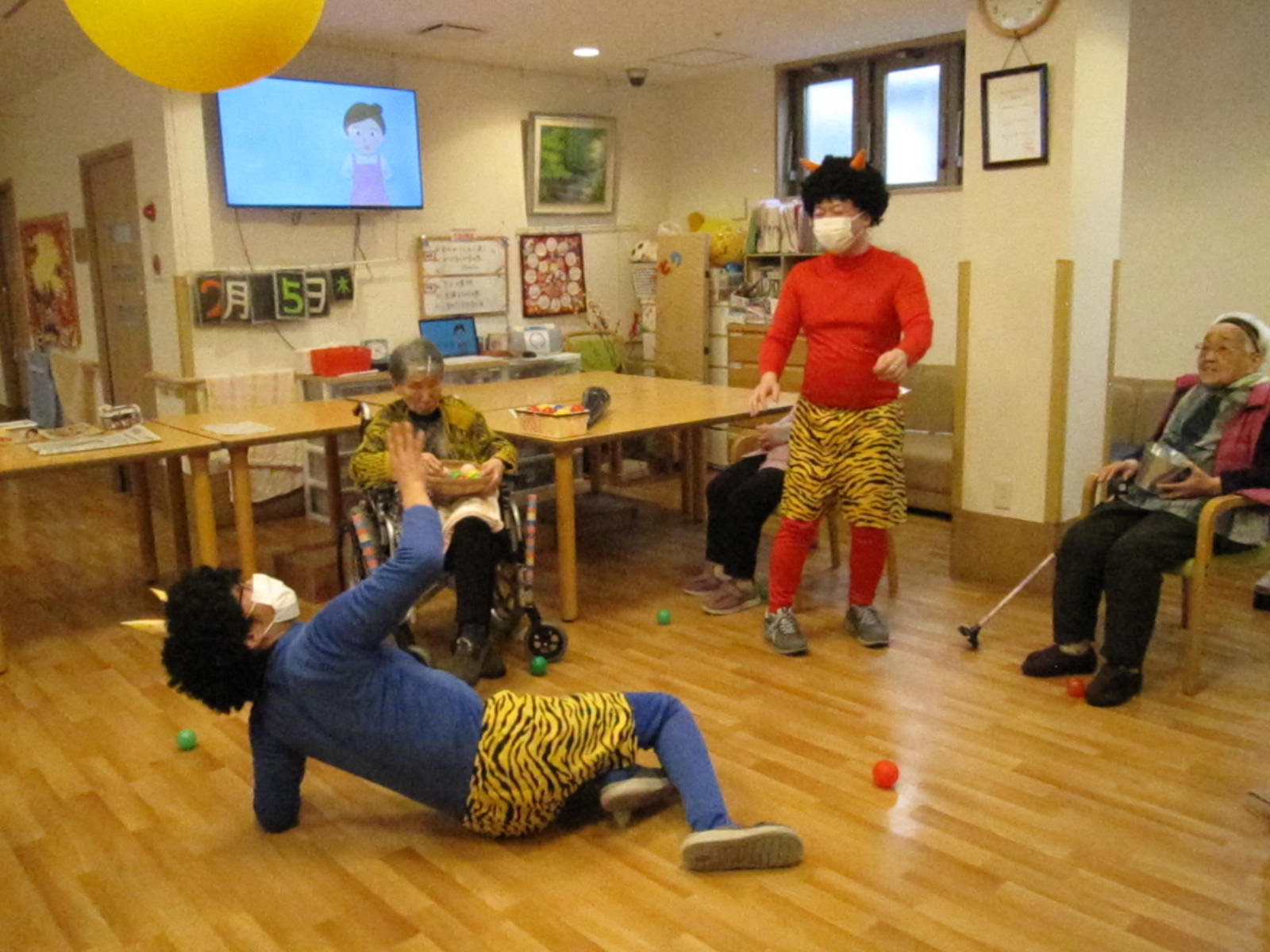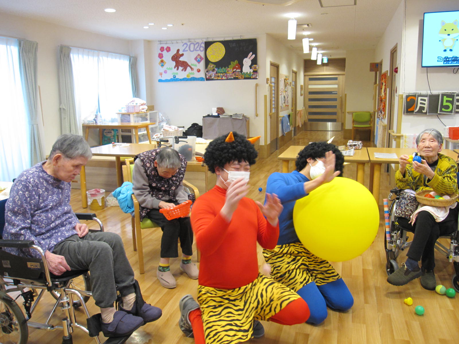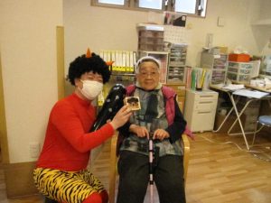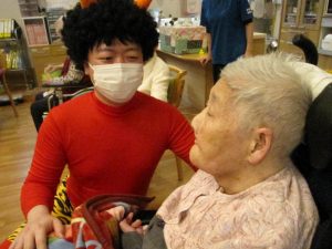 最初は驚かれていたご入居者様も、優しそうな鬼に次第に笑顔が見られるようになりました。