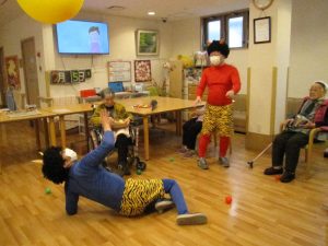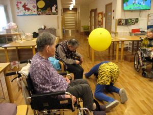 事前に用意した手作りボールや大きな風船を鬼に向かって投げていただきました。