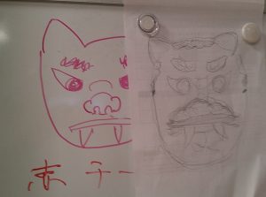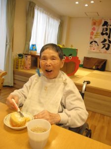 ご入居者様にも鬼の絵を描くのを手伝っていただき、フロアに飾りつけを行いました。