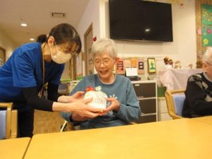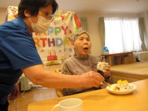 主役の方を囲み、皆さまで「ハッピーバースデー」を合唱しました。