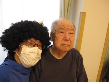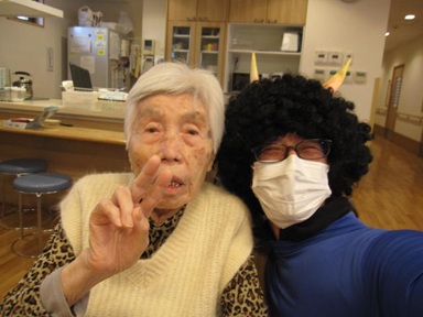 ご入居者様にも鬼の絵を描くのを手伝っていただき、フロアに飾りつけを行いました。
