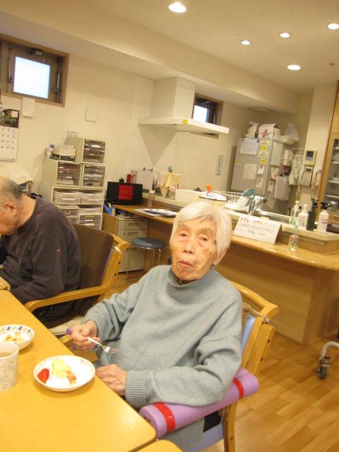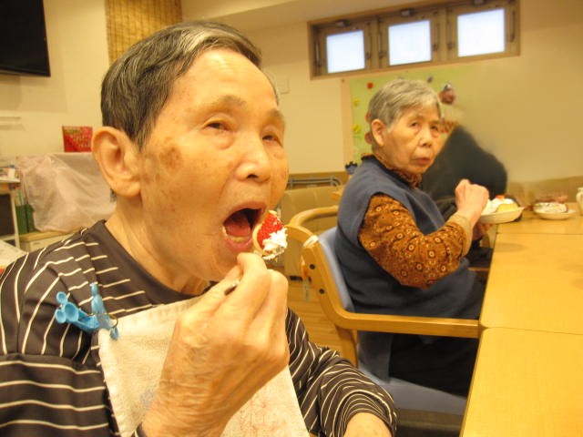 そしておやつの時間には、職員手作りのいちごのケーキと、ひな祭りらしいあられをご提供しました。