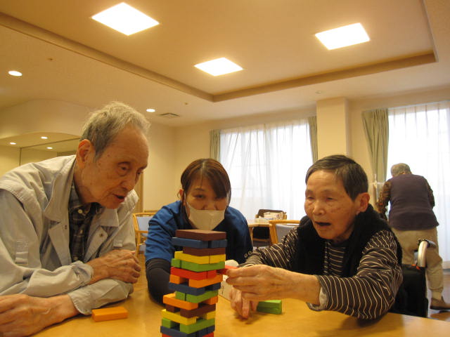 また日常のレクリエーションでは、ジェンガを楽しまれているご様子も見られました。