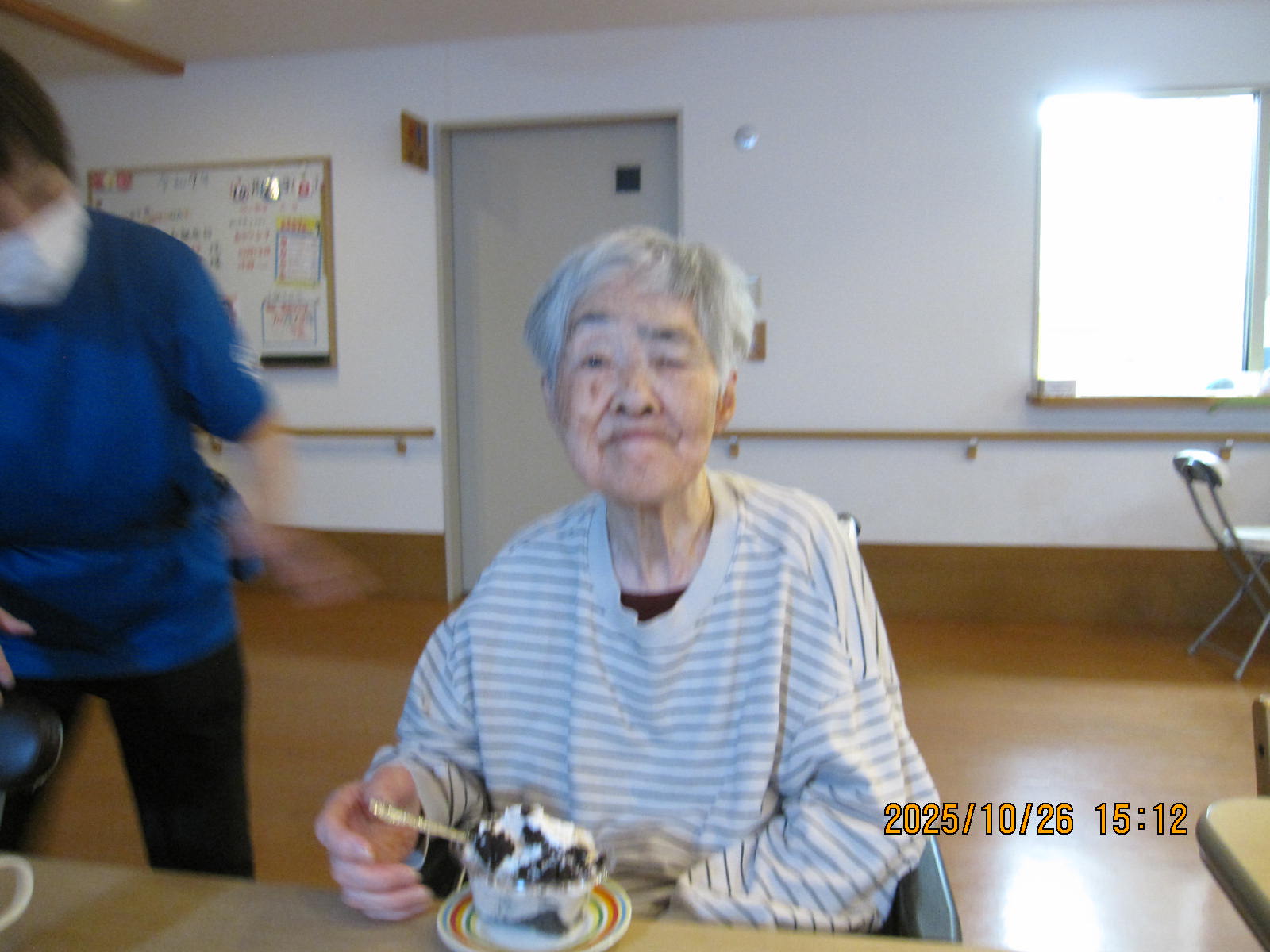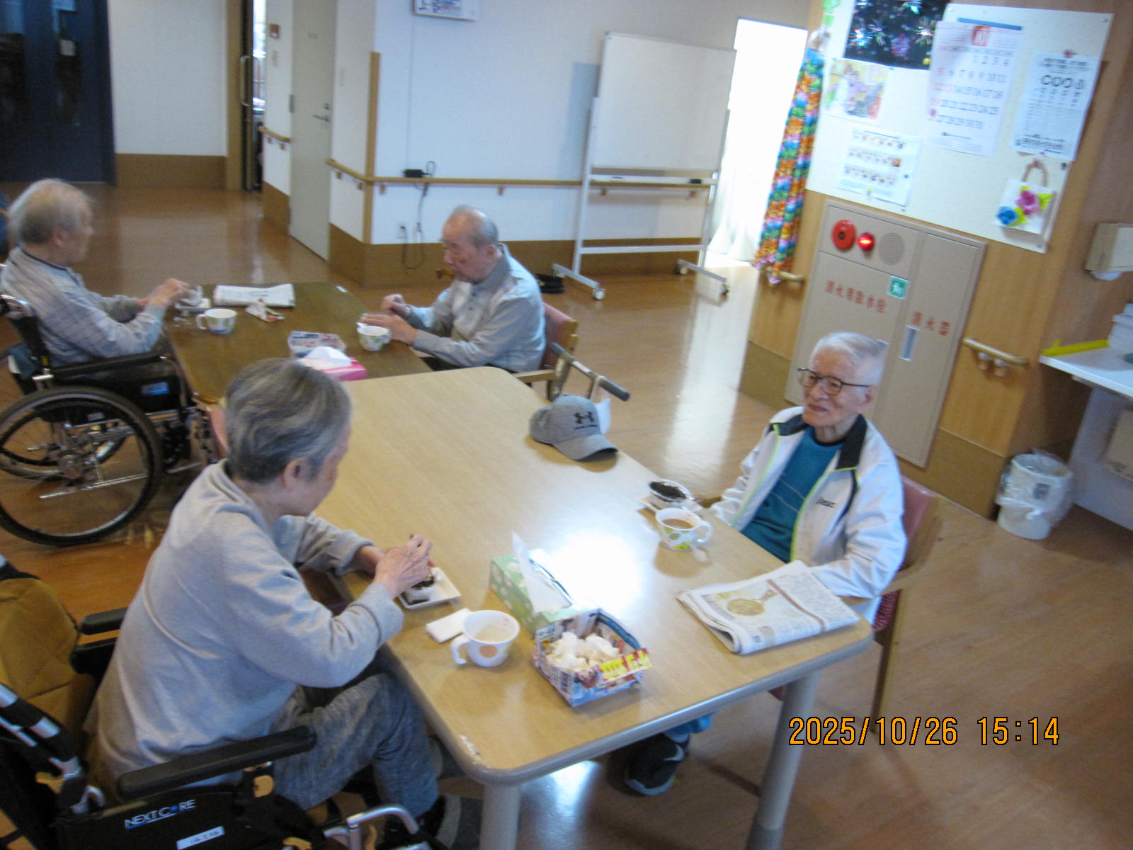 お誕生日会をしました🎉 10月の方 お誕生日おめでとうございます クリームケーキにクッキーがのってるのかな。美味しそうですね コーヒー☕もセットでホット一息 美味しく召し上がられておられました。 1年に一度のお誕生日 皆さん元気で長生きしてくださいね