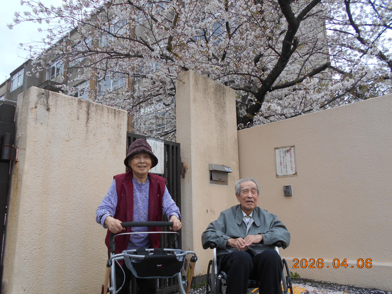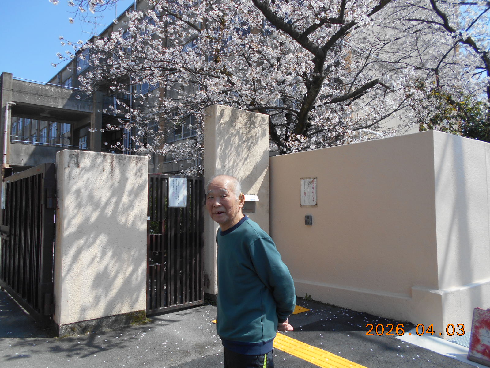 暖かい日には、小中学校門前にて記念撮影。