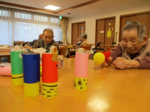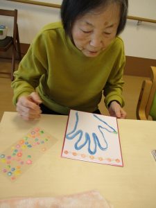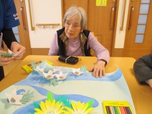 12日には初の試み『アートレク』という施設全体のレクリエーションを行いました。色紙に手形をペタッ✋シール等でデコレーションし完成✨