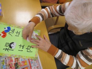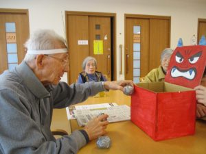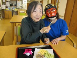 鬼玉入れやスポンジ鉄砲でしっかり鬼退治をした後は、甘納豆で一服です。