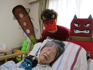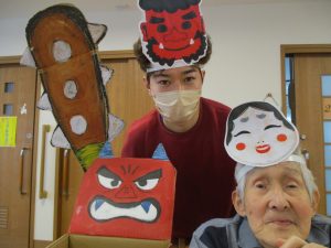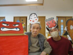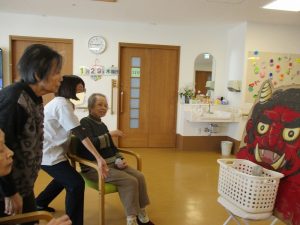 3日には夕霧にも鬼さんがやって来ました👹あまりにも優しそうな鬼さんに