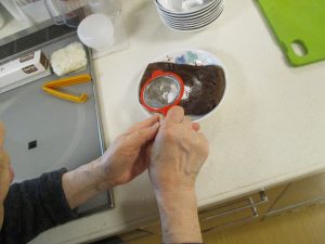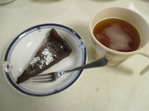 ガトーショコラ作りにもチャレンジしました。卵を割って生地を混ぜてもらい、仕上げに粉糖をパラパラ~(^o^)丿「美味しいね」「豪華なねぇ」と好評でしたよ。