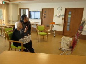 まさにテレビに食い入るように見ておられる入居者さまの姿です。