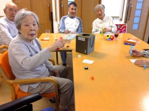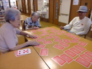 大きなトランプで神経衰弱 なかなかの接戦です!