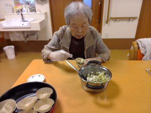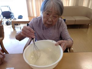 皆様 一人ひとり 紙のカップへ生地を入れてもらい 蒸し焼きにしました