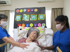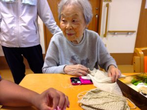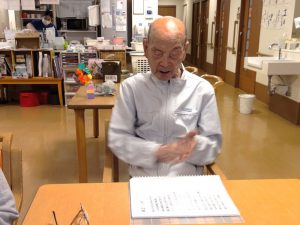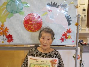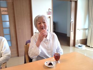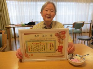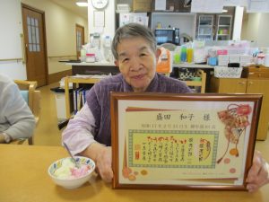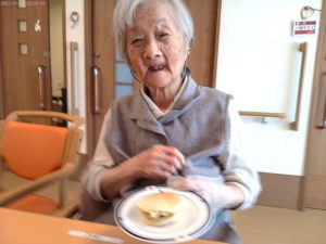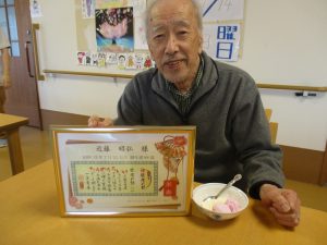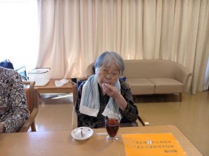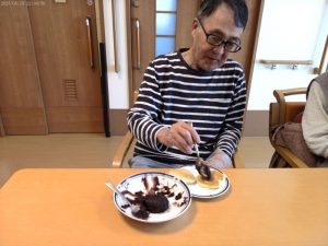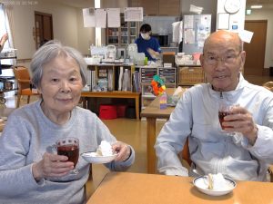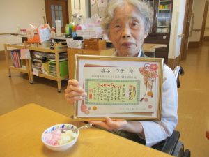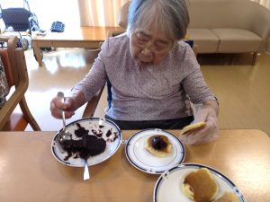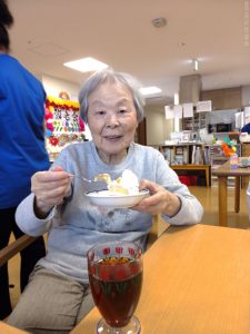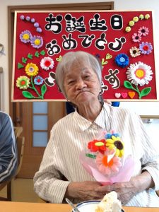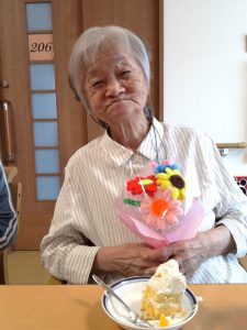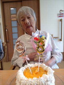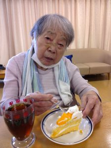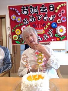 みんなで 職員の手作りケーキと 歌でお祝いし