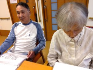 合唱はみなさん大好きで なん十曲も歌われます!喉がカラカラになるので 水分を摂りながら