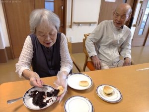 大きなお饅頭だったので 半分こで紅白にすると パクパク召し上がってくださいました