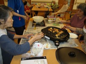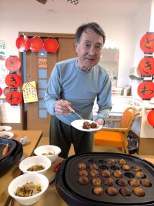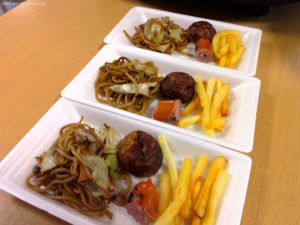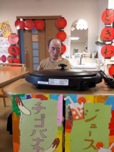 1部は お祭りの屋台にて たこ焼きや焼きそばポテトフライやフランクフルトが振舞われました