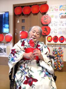 お祭りが終わっても 浴衣を着たままずっと座っておられる方もおられ