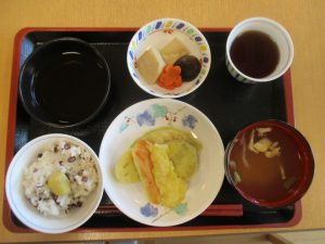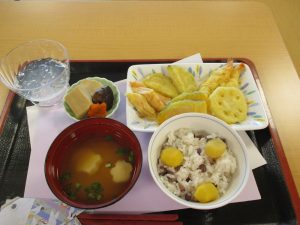 お昼は 豪華なてんぷらに栗赤飯が振舞われ