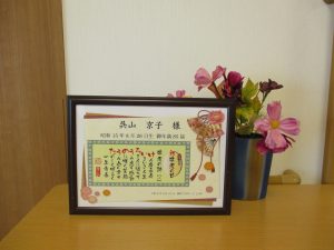 皆さんと作り上げた ブースで お祝いの賞状と記念撮影📷をしました