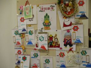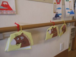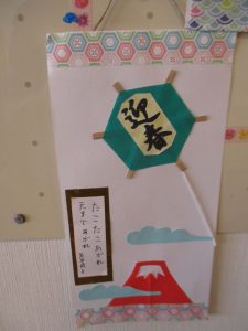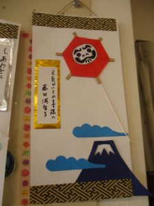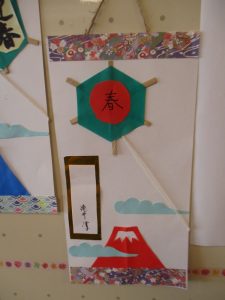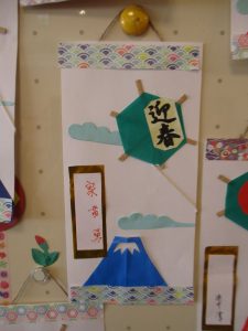 皆様でお正月ならではのミニ掛け軸を作りました。