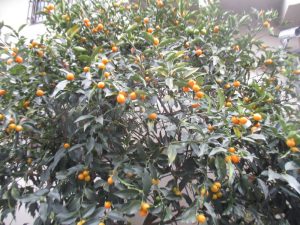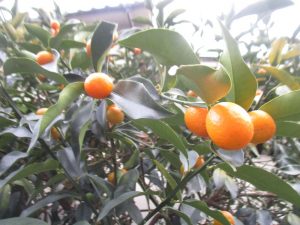 金柑の木をバックにパシャリ。