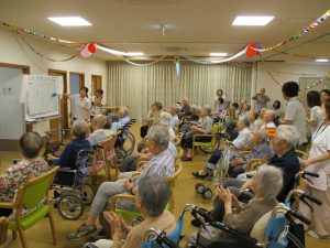 1階小規模リビングを会場に、全フロアのご利用者様が集結して、