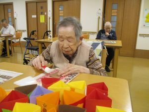 入居者様に折り紙や画用紙を切ったり折ったりして頂き…完成✨