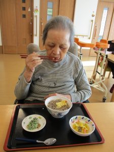 お昼に「年越しそば」を用意し、召し上がって頂きました