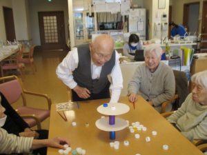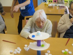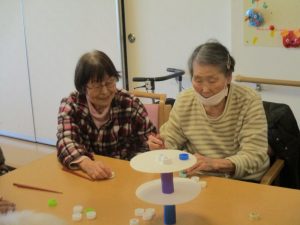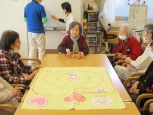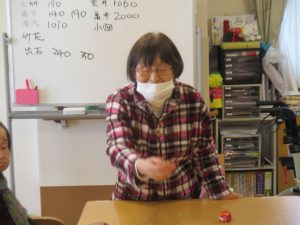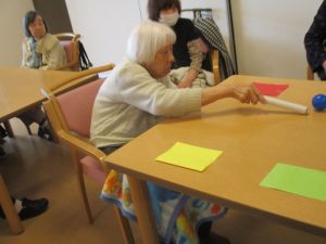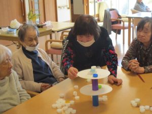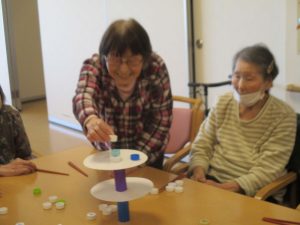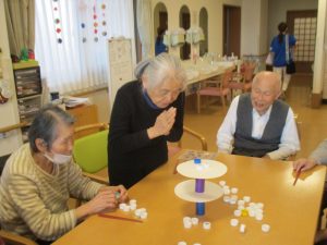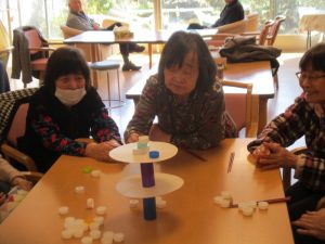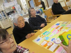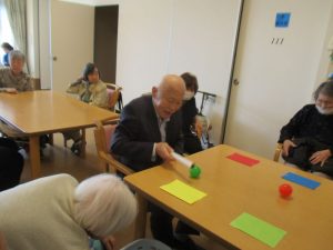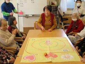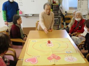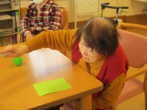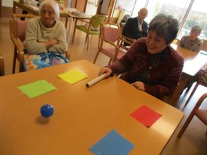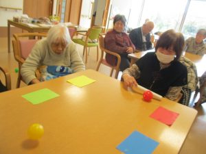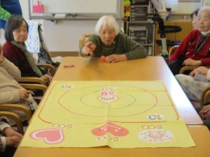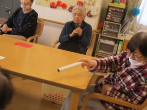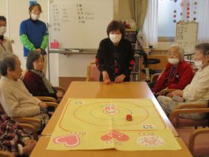 皆様とレクリエーションでおじゃみ投げをしました。