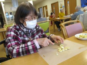 (フルーツをカットするわよぉ 楽しいわね)