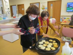 皆様と一緒に豆腐のパンケーキを作りました。