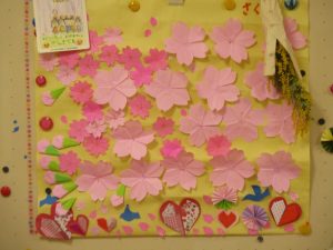 皆様と一緒に🌸の壁面作りをしました。