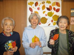 途中紅葉で綺麗な葉っぱを見つけ色々拾い