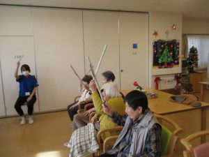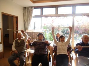 皆様と一緒に棒体操・輪投げを行いました。