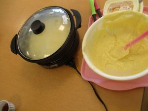 先ずはケーキ作りからスタートしました。