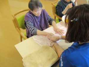 しっかり手の水分を拭き取って、ハンドクリームをつけ